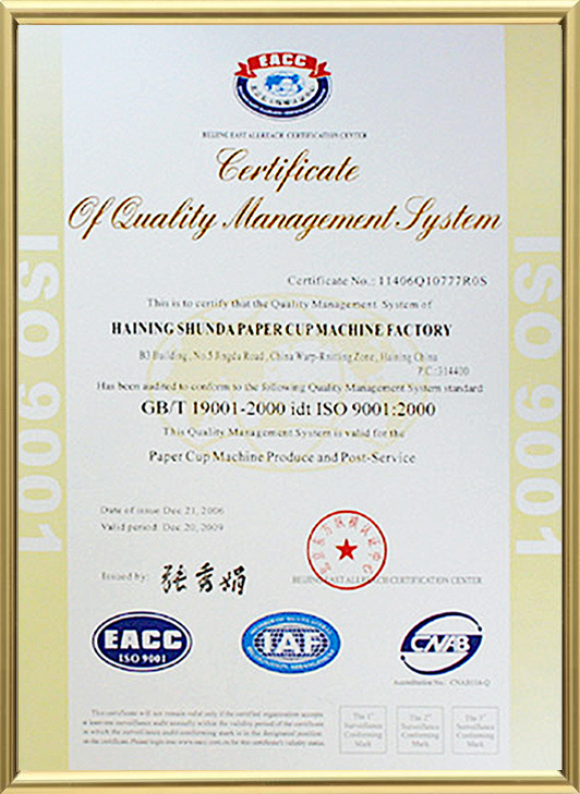 Haining shund kağıt fincan makinesi yüz Tory