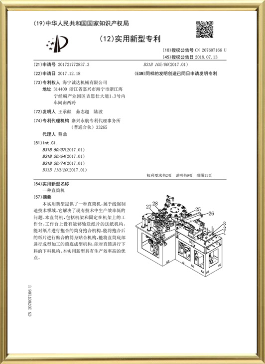 Düz silindirli bir makine için pratik bir patent